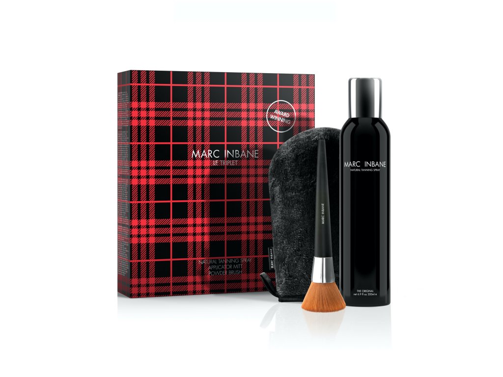 Přírodní opalovací sprej MARC INBANE je k dostání v dárkové sadě s rukavicí a powder štětcem. Oceněný přírodní samoopalovací sprej je dokonalá tajná zbraň pro ty, kteří chtějí přirozenou a rovnoměrně opálenou pleť po celý rok.